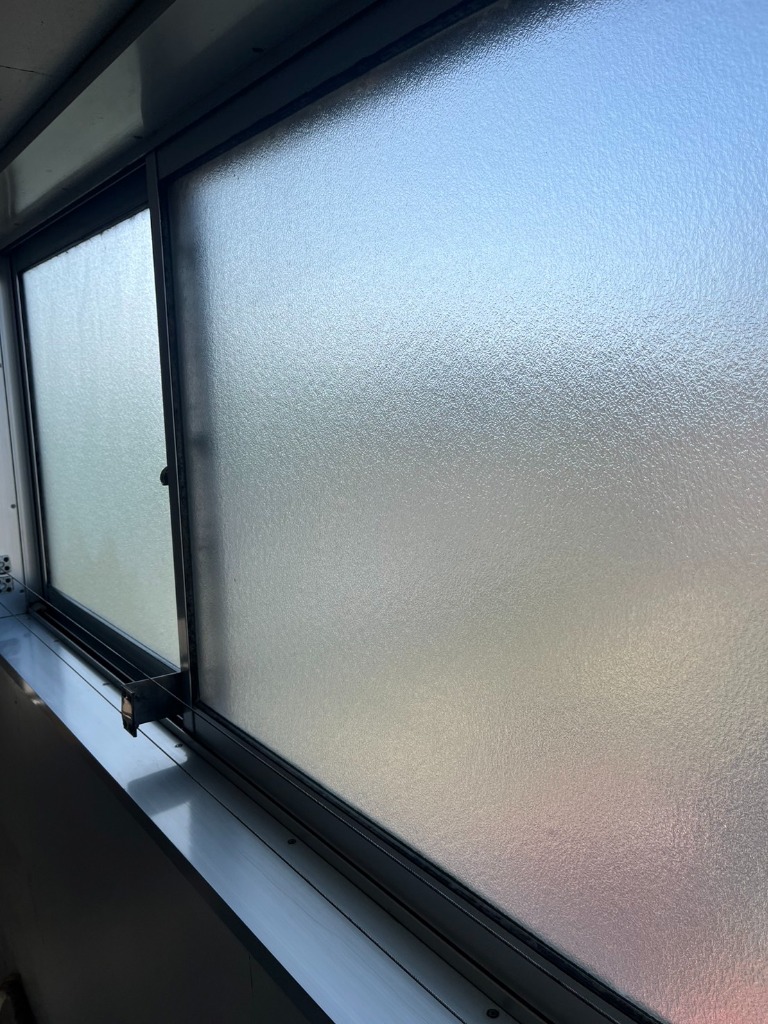 喫煙所だけあって長年のタバコのヤニがサッシにこびりついて、頑固な汚れとなっていました。
