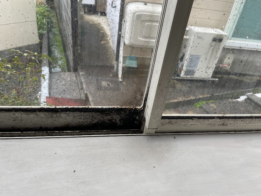 お掃除の大変な方だったのでしょうか、サッシのカビが凄く真っ黒になっていました💦